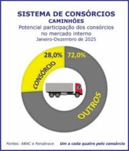 AQUISIÇÕES DE VEÍCULOS VIA CONSÓRCIO MANTÉM SUA PARTICIPAÇÃO NAS VENDAS NO MERCADO INTERNO EM 2025
