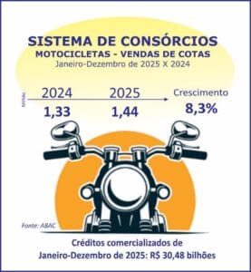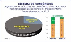 Presente em outros setores como o das duas rodas, o mecanismo também evoluiu. Nos doze meses de 2025, as contemplações possibilitaram a potencial aquisição de uma moto a cada três comercializadas no mercado interno.