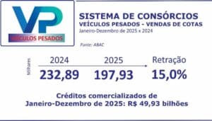 De janeiro a dezembro, o consórcio acumulou vendas no total de 5,16 milhões de cotas, mais uma vez um novo recorde histórico. Houve aumento de 15,0% sobre as 4,49 milhões de adesões de 2024. Os créditos comercializados, resultantes dos negócios concretizados, também bateram recorde. O volume ultrapassou a marca de R$ 500,27 bilhões, 32,1% maior que os R$ 378,73 bilhões do ano de 2024.