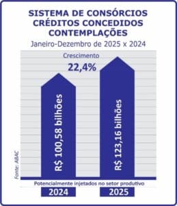 O Sistema de Consórcios obteve marcas expressivas nos indicadores, durante 2025 em relação a 2024, considerada a avaliação de dados fornecidos pela maioria significativa das associadas da ABAC Associação Brasileira de Administradoras de Consórcios, feita pela assessoria econômica da entidade.