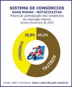 Presente em outros setores como o das duas rodas, o mecanismo também evoluiu. Nos doze meses de 2025, as contemplações possibilitaram a potencial aquisição de uma moto a cada três comercializadas no mercado interno.
