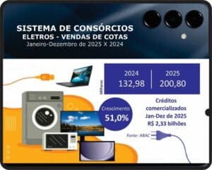 “Em 2025 registramos efetivamente um dos melhores resultados do Sistema de Consórcios ao longo de sua história.  O desempenho anotado, comparado a 2024, foi positivo especialmente no crescimento do número de consorciados, considerado o aumento de conhecimento da essência da educação financeira. Apoiados no planejamento, os participantes vêm conquistando seus objetivos pessoais, evolução patrimonial, melhoria da qualidade de vida, entre outros”, aponta Paulo Roberto Rossi, presidente executivo da ABAC Associação Brasileira de Administradoras de Consórcios.