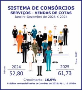 O Sistema de Consórcios obteve marcas expressivas nos indicadores, durante 2025 em relação a 2024, considerada a avaliação de dados fornecidos pela maioria significativa das associadas da ABAC Associação Brasileira de Administradoras de Consórcios, feita pela assessoria econômica da entidade.