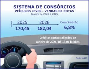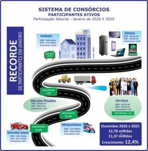 No primeiro mês deste ano, o Sistema de Consórcios apresentou resultados positivos quando comparados com janeiro de 2025. A exemplo de meses anteriores, a modalidade seguiu quebrando alguns recordes nos indicadores nacionais e setoriais. Ao comprovar que a escolha do brasileiro continua ratificando sua crescente confiança, o consórcio provou também sua importância nos segmentos produtivos.