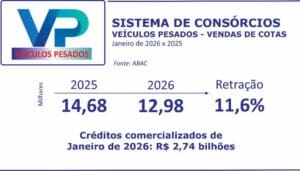 Na separação entre novos e usados, houve 14,2% de caminhões zero comercializados via consórcio e 85,8% por financiamentos. Os seminovos somaram 12,4% via Sistema de Consórcios, enquanto 87,6% foram por financiamentos.